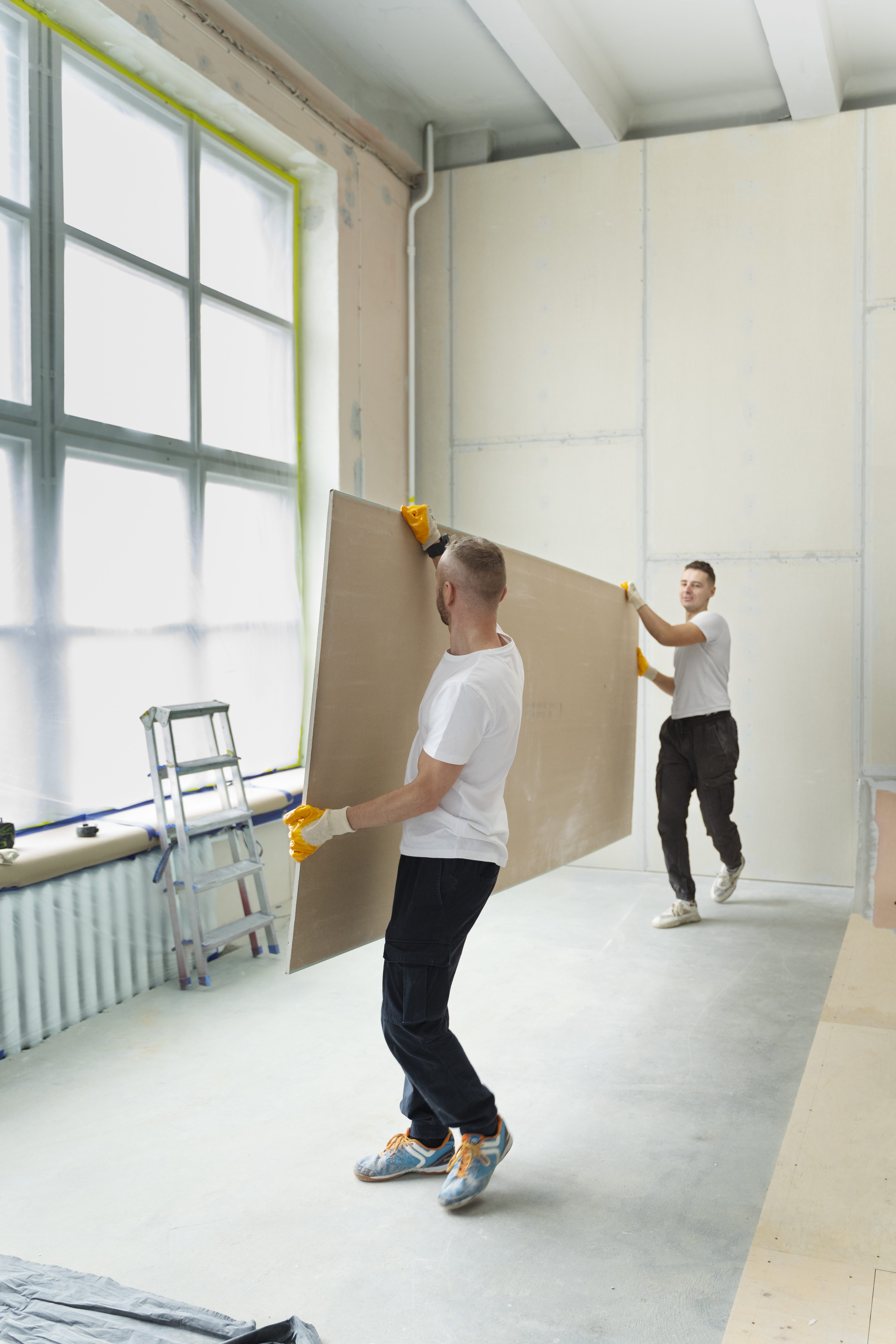 Szybko i czysto realizujemy ściany działowe, sufity podwieszane, zabudowy sufitów i skosów, wnęki oraz zabudowy instalacji z płyt g‑k, także akustyczne i ogniochronne.